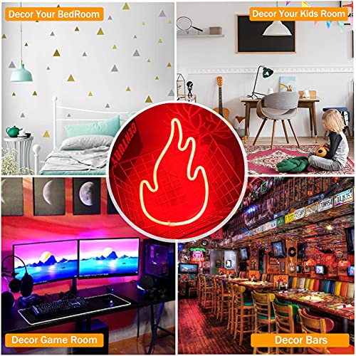 - đ„ăAcrylic LED+Silicon Strips+ABSă: This flame LED neon light sign use at low voltage, save electricity, and it will not get too hot. Our neon lights signs are made of flexible silicon LED strip lights and acrylic, no risk of glass breakage or leakage of hazardous materials.