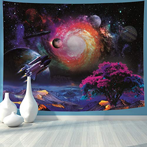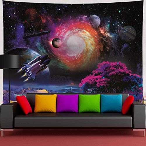 - UNIQUE DESIGN: The space rocket tapestry pattern is clear and colorful, realistic rockets, psychedelic trees, and colorful galaxies, showing you a wonderful sky landscape phenomenon, which is full of mystery in your room.