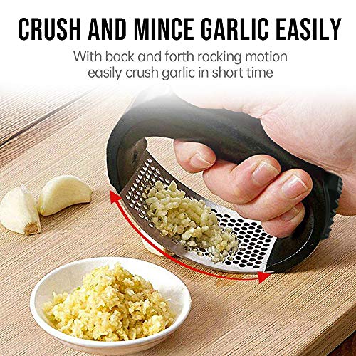 - 【PERFECT KITCHEN GADGET】 You can crush garlic effortless in seconds. This garlic mincer is ideal for cooking. Can be the best garlic press for chef, foodie, or garlic lover. Our garlic press rocker is the perfect gift for your family and friends.