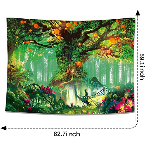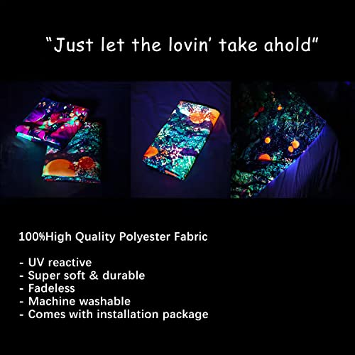 - GLOW IN THE DARK: This Magic Tree Tapestry finally glows! We have improved the printing process by using special ink to make this fairy tale tapestry,under the UV irradiation,glow in the dark,charming and dreamy. Besides, it also looks cool under LED and neon lights. 100% polyester, soft and comfortable, beautiful and durable, no chemical odor, easy to hang or pack.