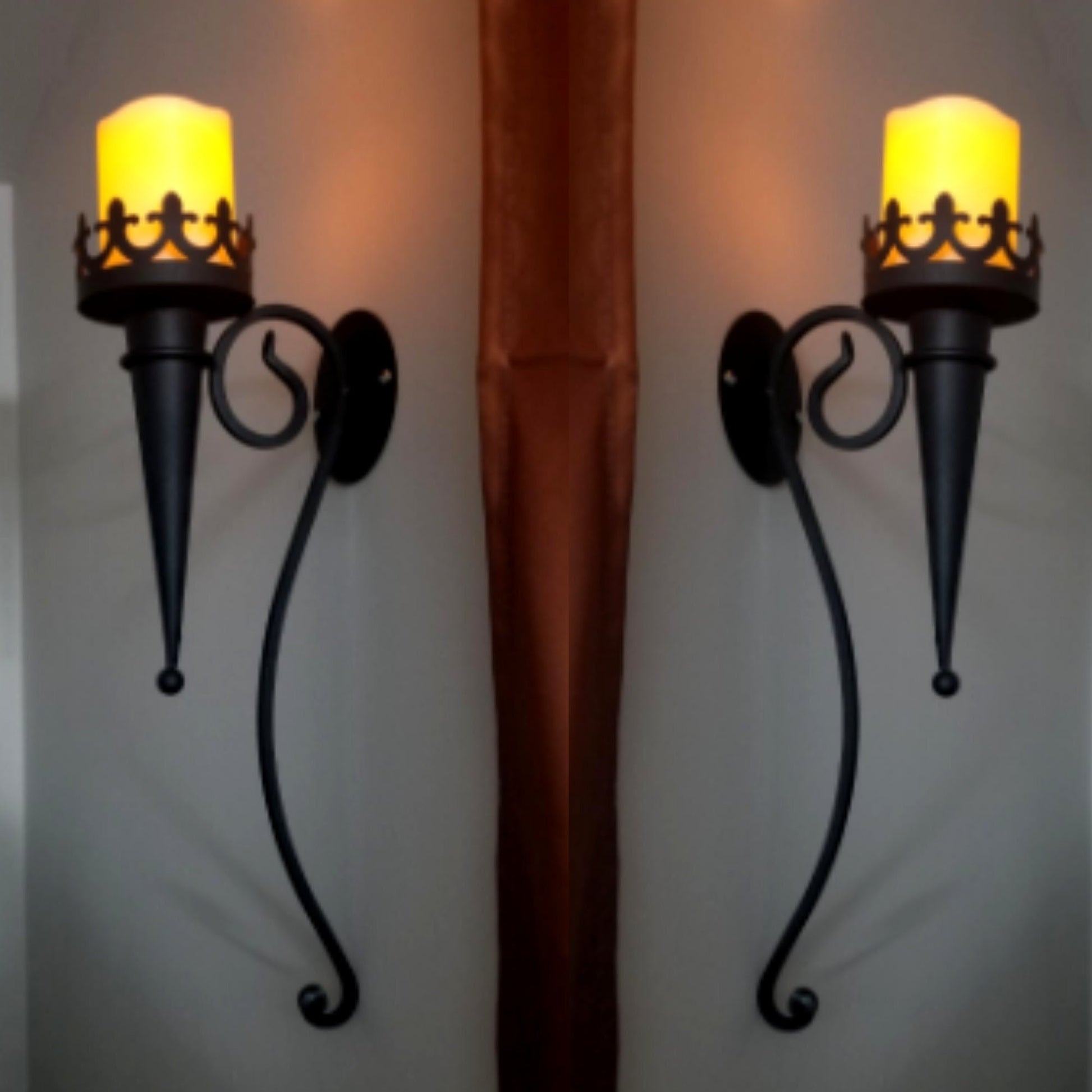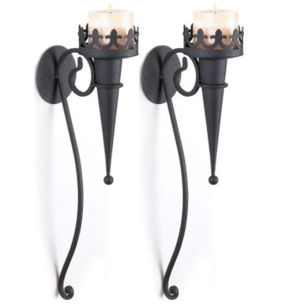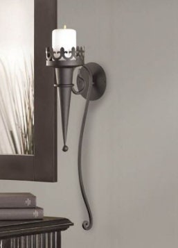 • Add a touch of Gothic finery with this stunning torch-style sconce that easily attaches to any wall!