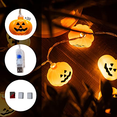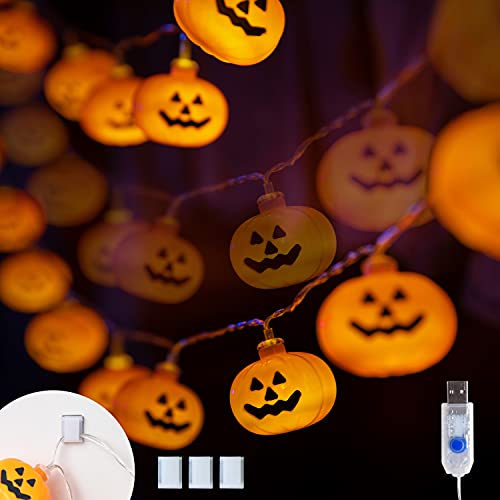 Halloween Lights String LED 17FT USB Powered Pumpkin Lights with 8 Lighting Modes
