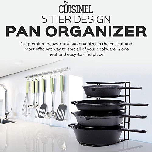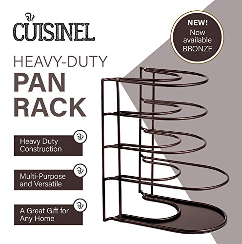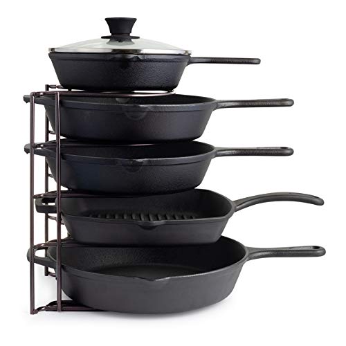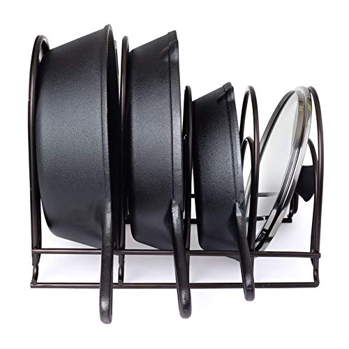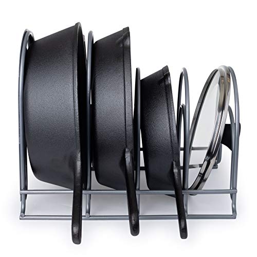 - HEAVY DUTY CONSTRUCTION: Designed to hold even your heaviest cast iron pans, the strong metal ensures your pan organizer will be a lifetime investment. Durable and built to last, this rack can handle anything!