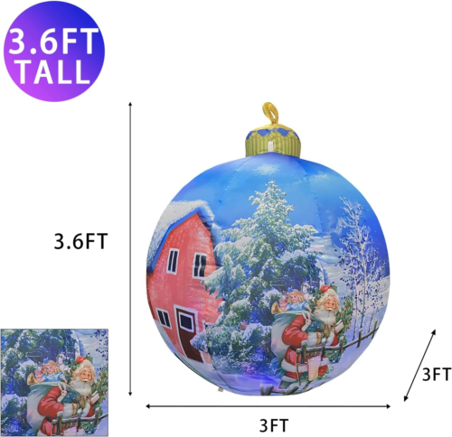 • 🎅 【3.6FT CHRISTMAS BLOW UPS】 - Inflatable christmas ball decoration outdoor with the bright built-in LEDs is the most ideal christmas blow up decoration for indoors and outdoors, creating a warm and happy atmosphere for your yard and room. A magic weapon that attracts the attention of neighbors, guests and friends