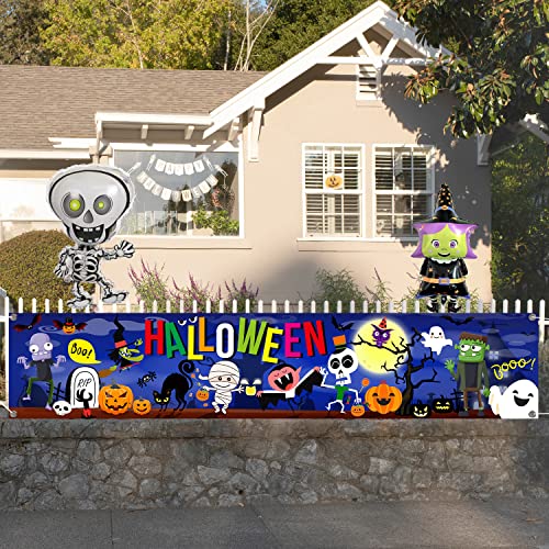 - Unique Design:Ghosts, pumpkins, zombies, cemeteries, mummies and the symbols of Halloween, black cats, bats, and witches, all gather together on this night, perfectly blending on a huge banner, hanging it on the fence, passing children Everyone will come to you for "Trick or Treat", the holiday atmosphere is self-evident.