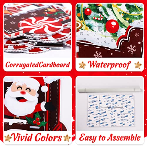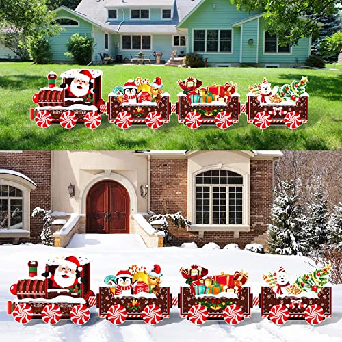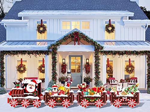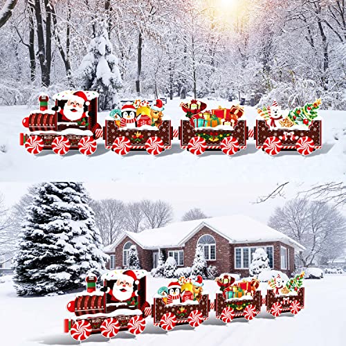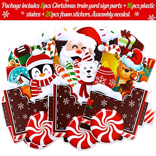 - Christmas yard decorations - Package includes 8pcs Christmas train yard sign parts,16pcs plastic stakes and 20pcs foam stickers.It features Santa Clause,penguin,bear,Christmas tree,gift,candy cane,etc.Assembly needed.