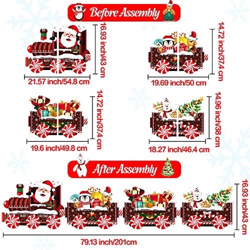 - Measurement & Material - The whole Xmas train yard sign is approx 79.13” x 16.93” after assemble.Stakes is 9.84”.One side printing.Made of sturdy and waterproof cardboard material.
