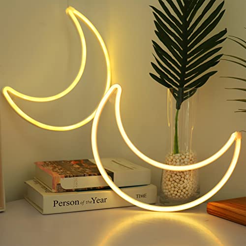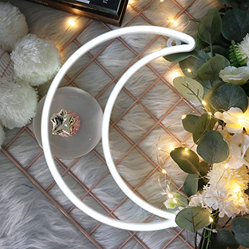 - Unique Design - Moon shaped neon signs night light is the ideal eye catching decoration for your party or home table and wall.