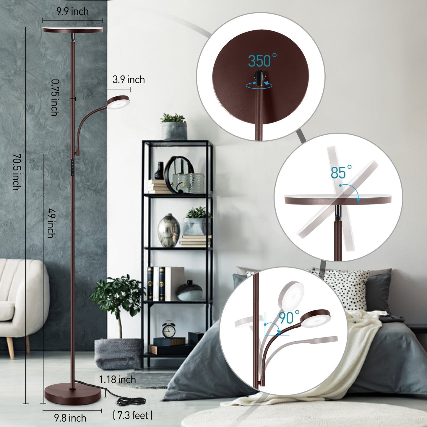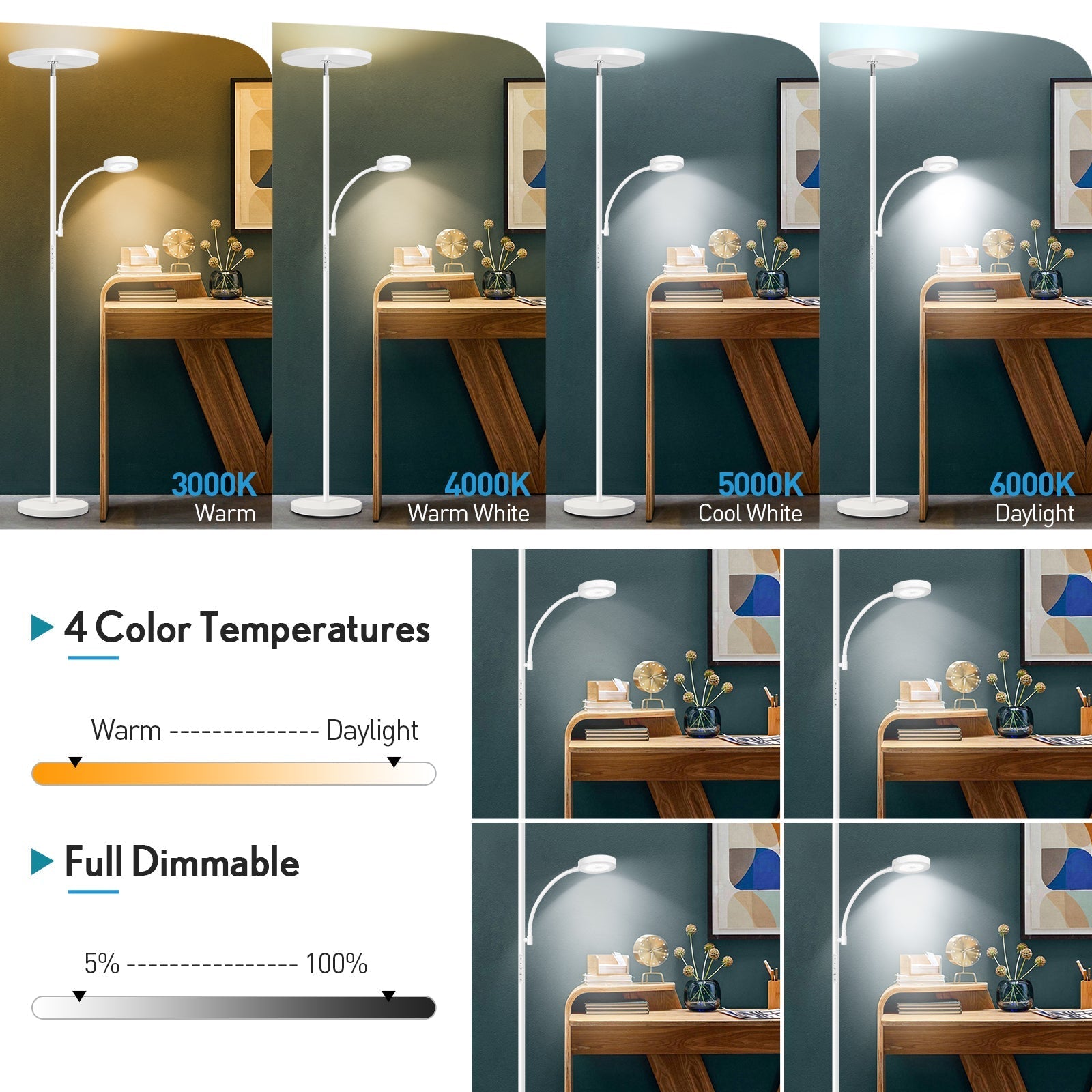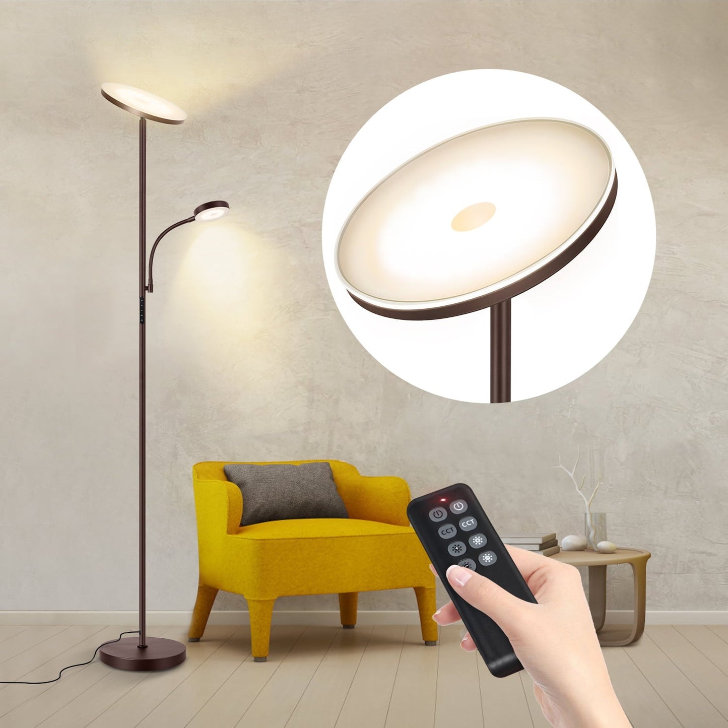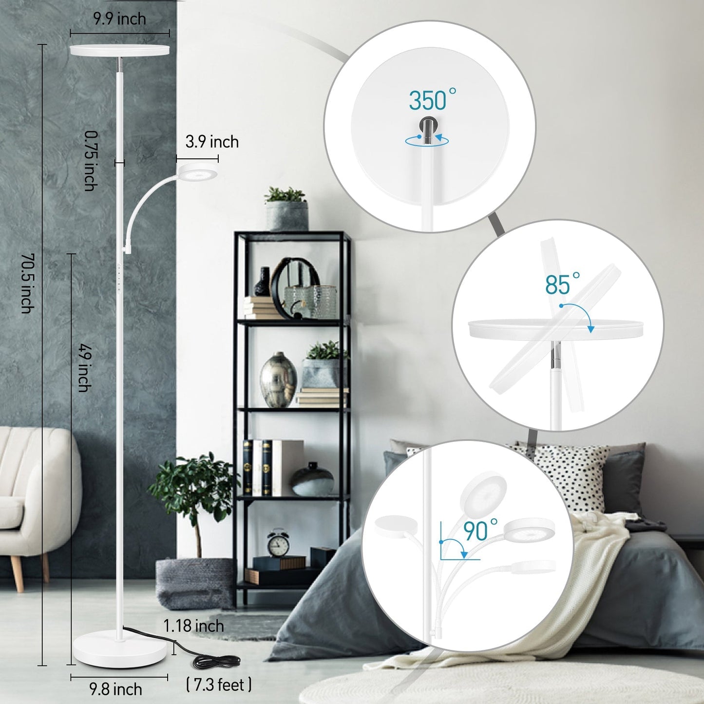 - Built-in 126+28 high brightness LEDs, up to 2400+400 lumen step-less dimming standing lamp is enough to light up your living room and has 40,000 hrs lifespan to save you from the trouble of replacing lamps frequently.