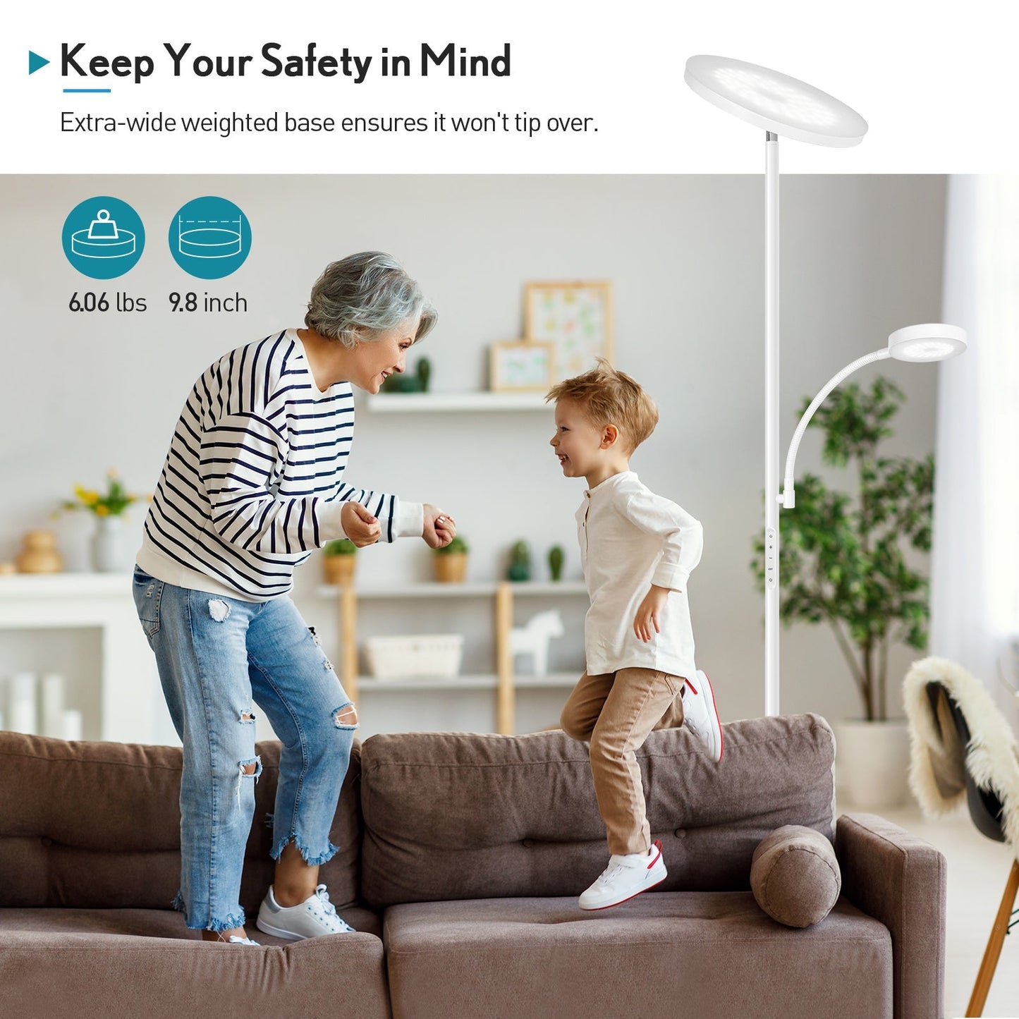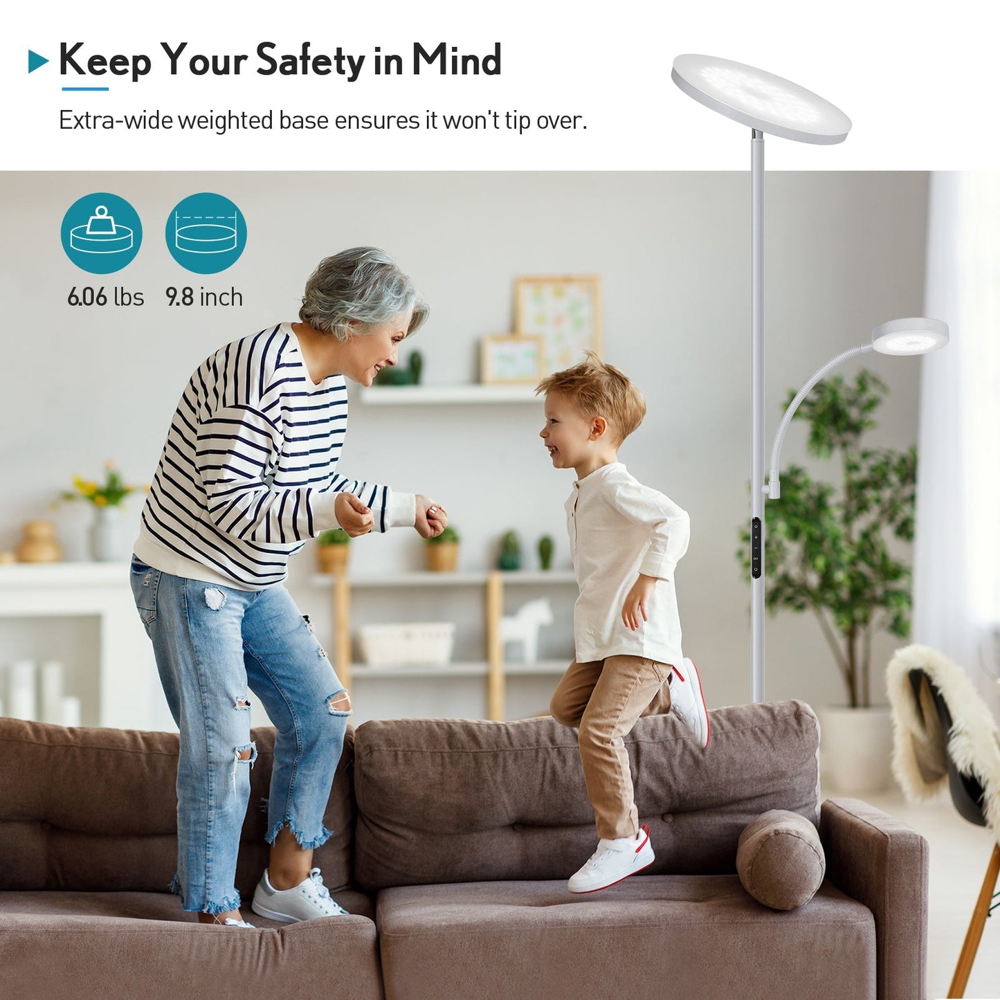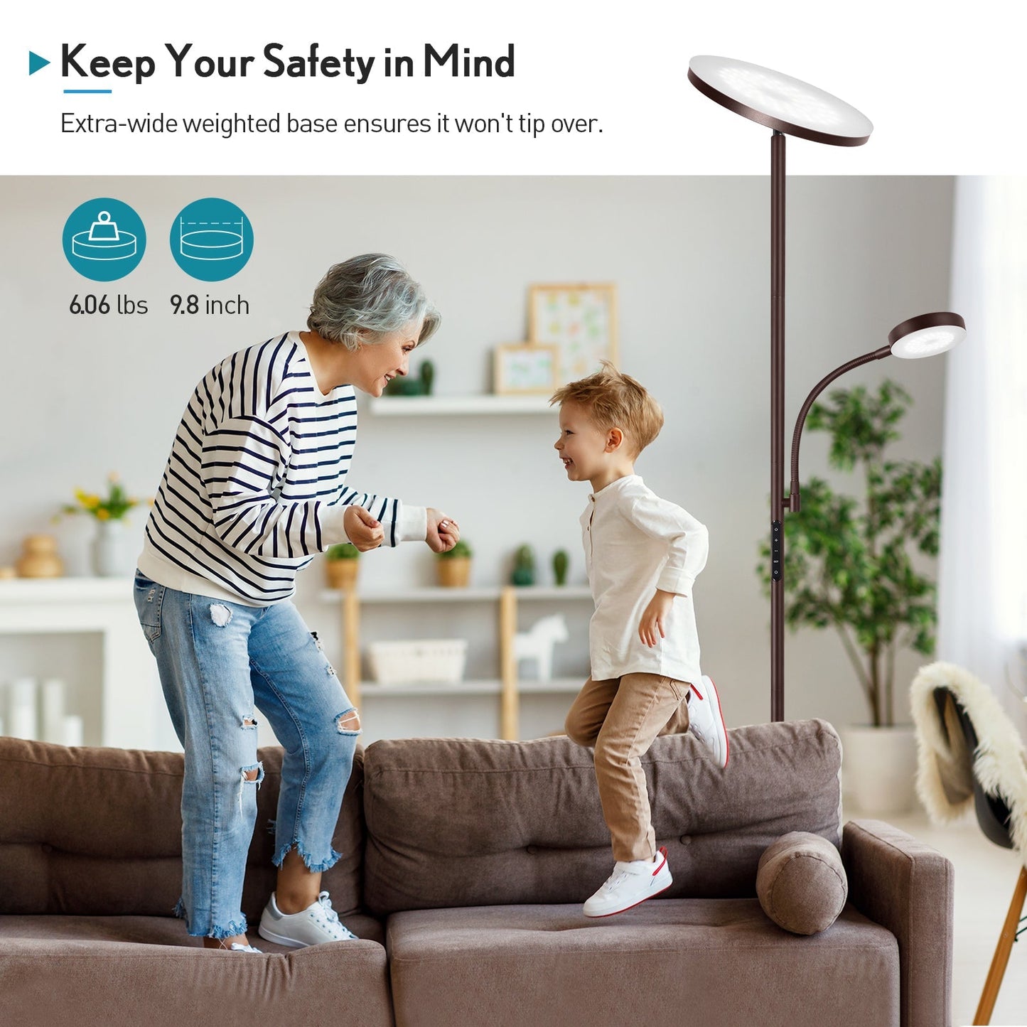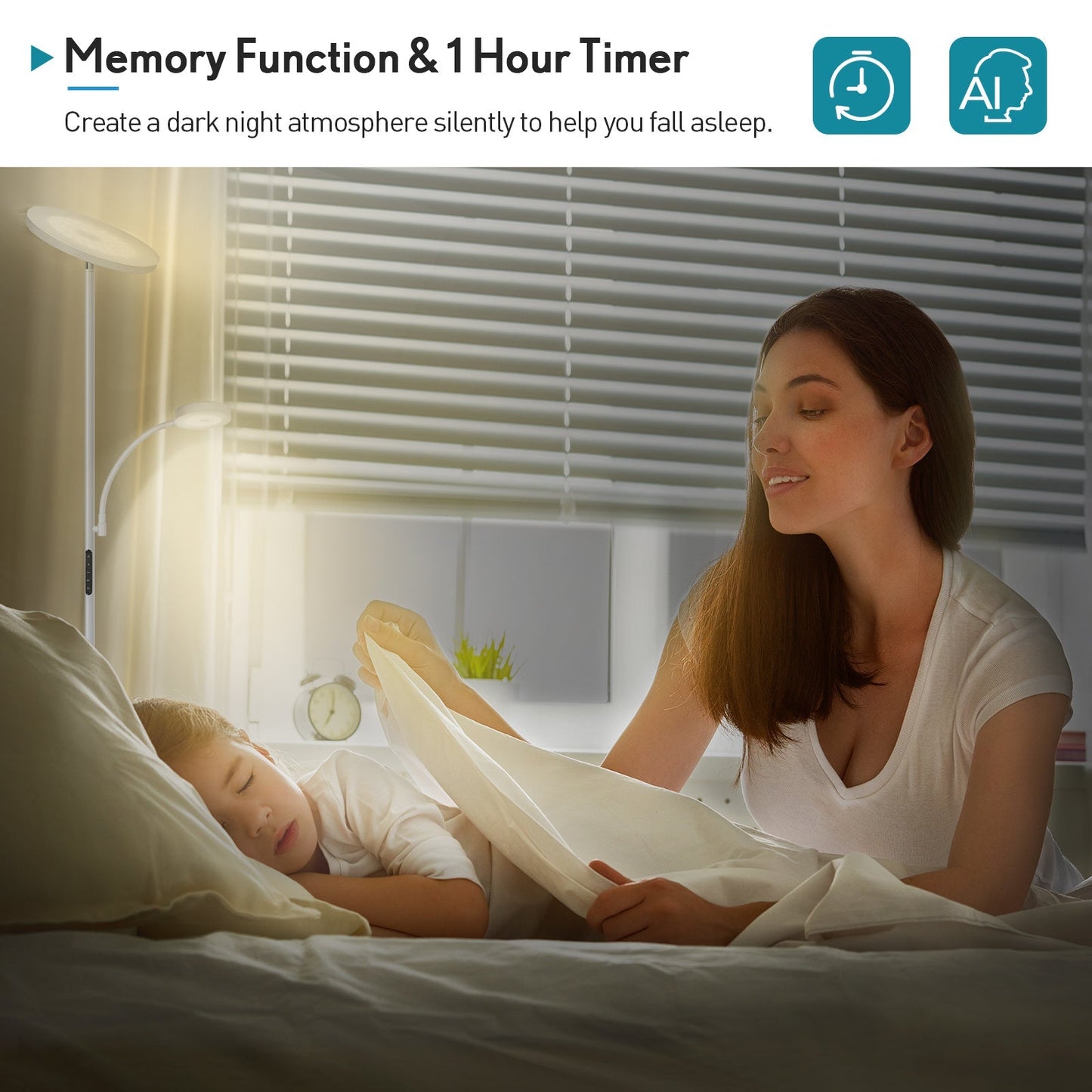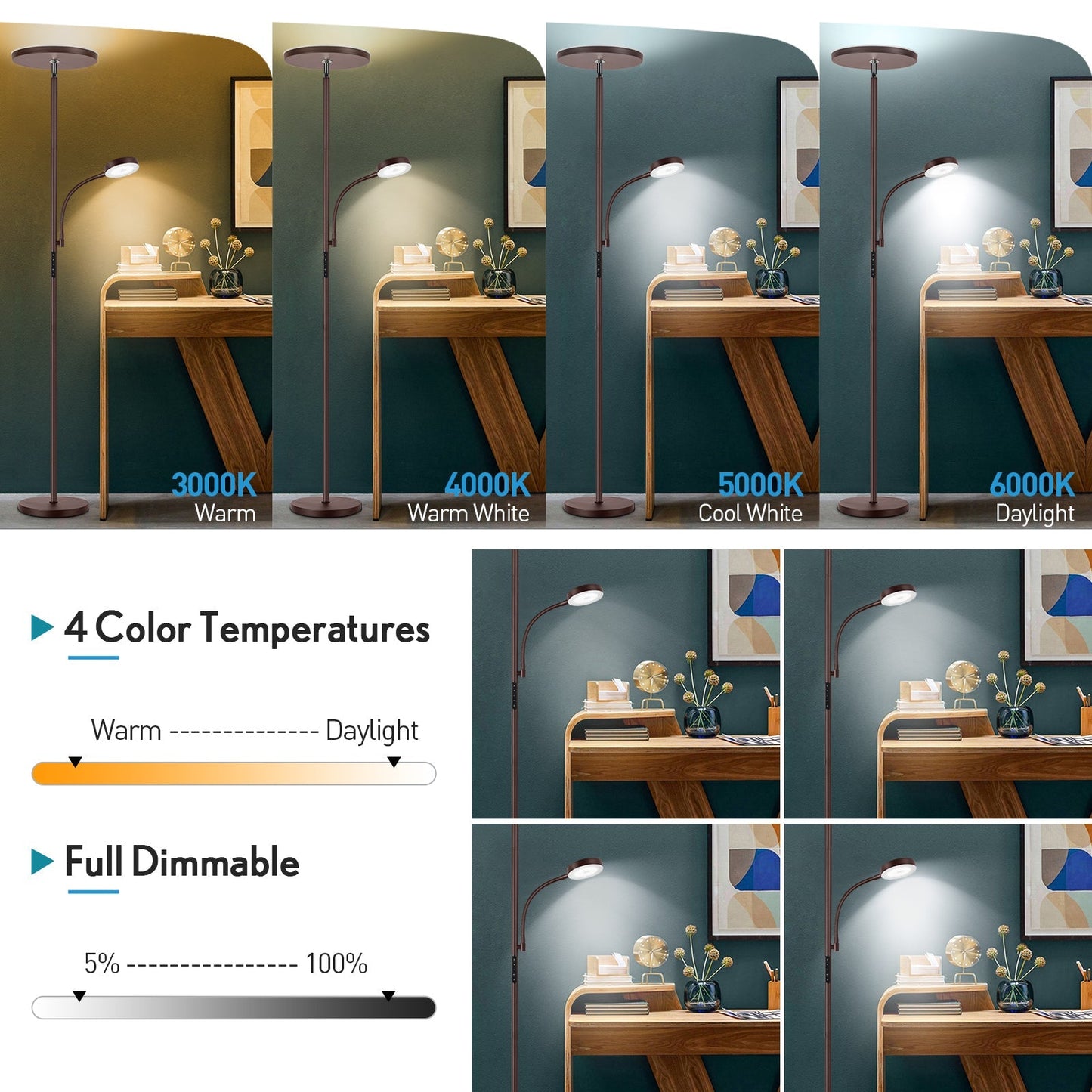 - Built-in 126+28 high brightness LEDs, up to 2400+400 lumen step-less dimming standing lamp is enough to light up your living room and has 40,000 hrs lifespan to save you from the trouble of replacing lamps frequently.