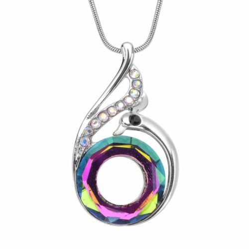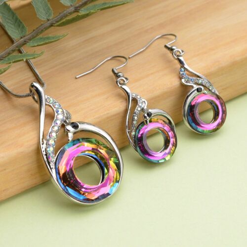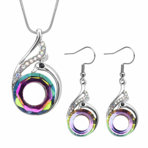 Magic Purple Glass Peacock Earrings for Women Pendant Necklace Jewelry Set