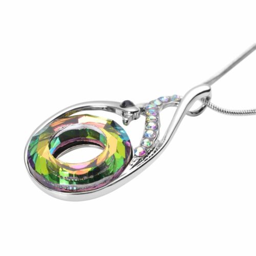 Inspired by a peacock bird, these simulated white mystic color glass jewelry set looks stunning. Multi-colored Austrian crystals follow the circular simulated white mystic color glass. This jewelry set has fishhooks for easy gripping and taking off.