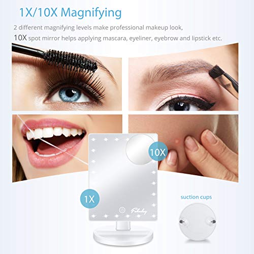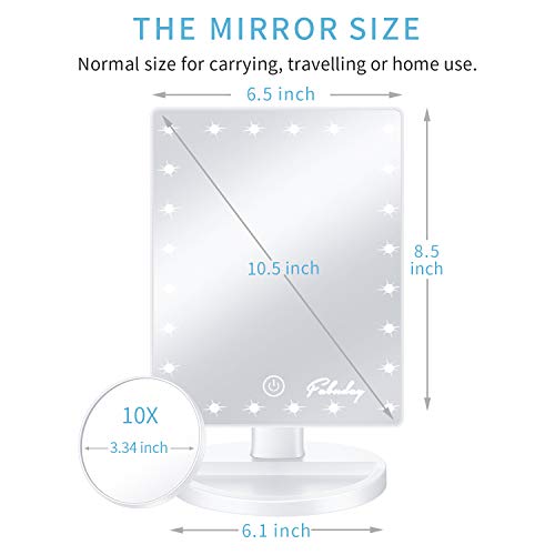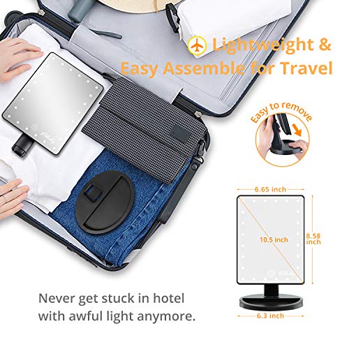 - 10X MAGNIFYING MIRROR - This lighted makeup mirror comes with an additional compact & detachable 10X magnification mirror to help do detailed makeup work, whether you're at home or on-the-go