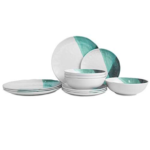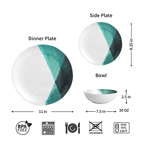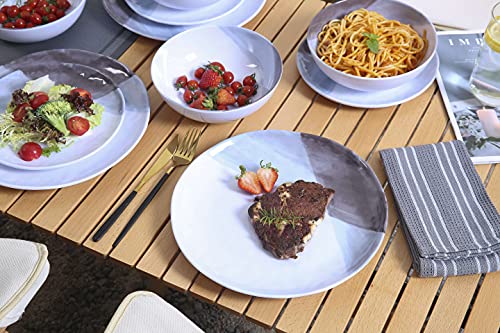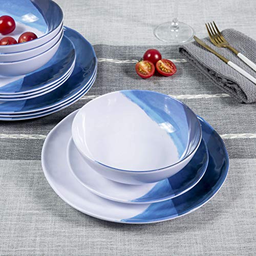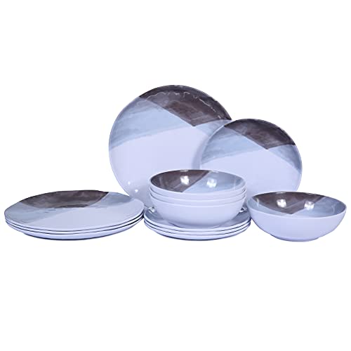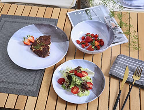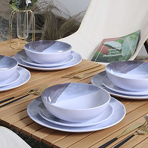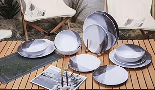 Melamine Plates & Bowls Set - 12pcs Dinnerware Sets for 4