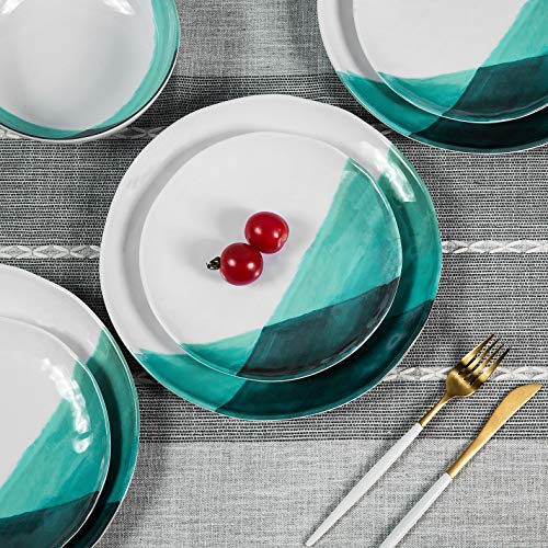 - Multifunctional: Portable and lightweight make them are the best choice for a family of four at camping, dinner, party, picnic, etc. The unique color matching design makes the whole set of dinnerware more attractive.