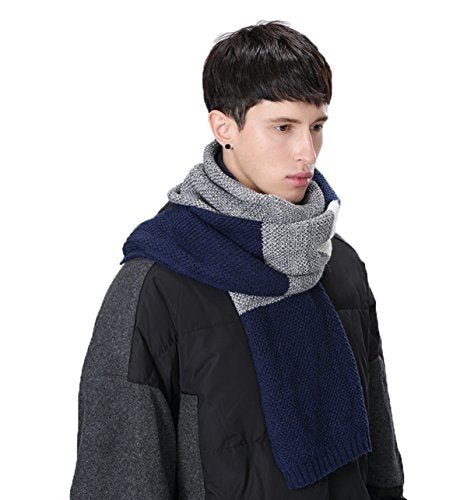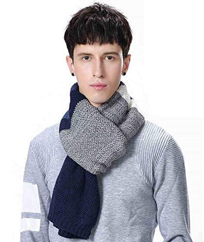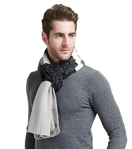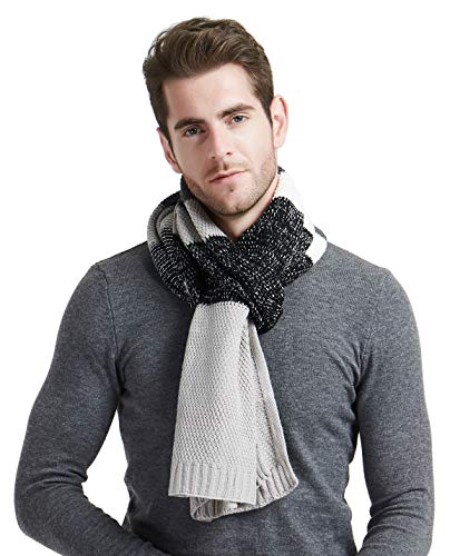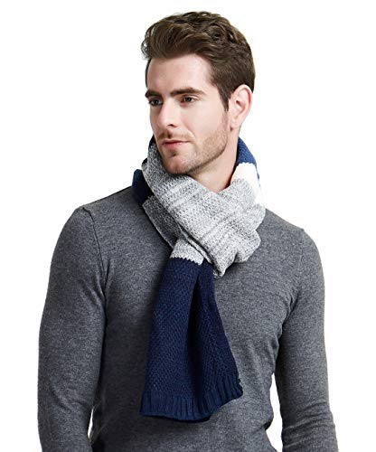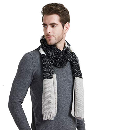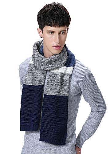 Men's Winter Scarf, Color Block Striped Long Scarf Knit Wool Cashmere Feel Soft Fashion Scarves
