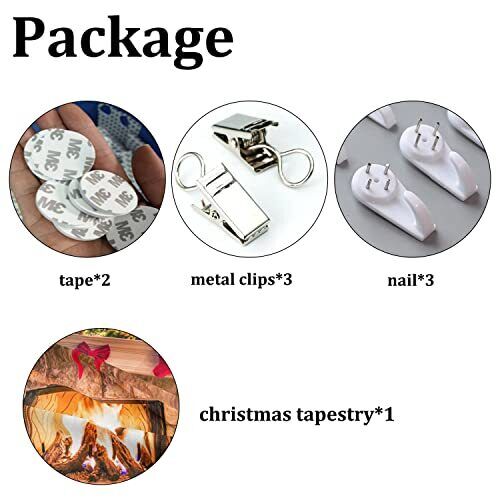 🎅Package includes 1*tapestry,3*nails,2*tapes,3*metal clips,you can easily install tapestries with these accessories