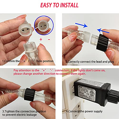 - 【Safe Guarantee】Authoritative UL certified, powered by 7V low voltage that is lower than human body safe voltage for safe use, definitely no risk of electric shock. The LED beads are low consumption and energy saving, no overheat after long time using, no risk of fire. Just plug it into the socket to turn the meteor lights on, unplug to turn it off, super easy to operate.
