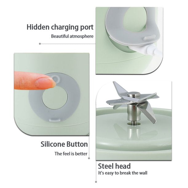 Mini Portable Juicer Cup USB Electric Mixer Bottle Fruit Smoothie Blender Travel Home, Green