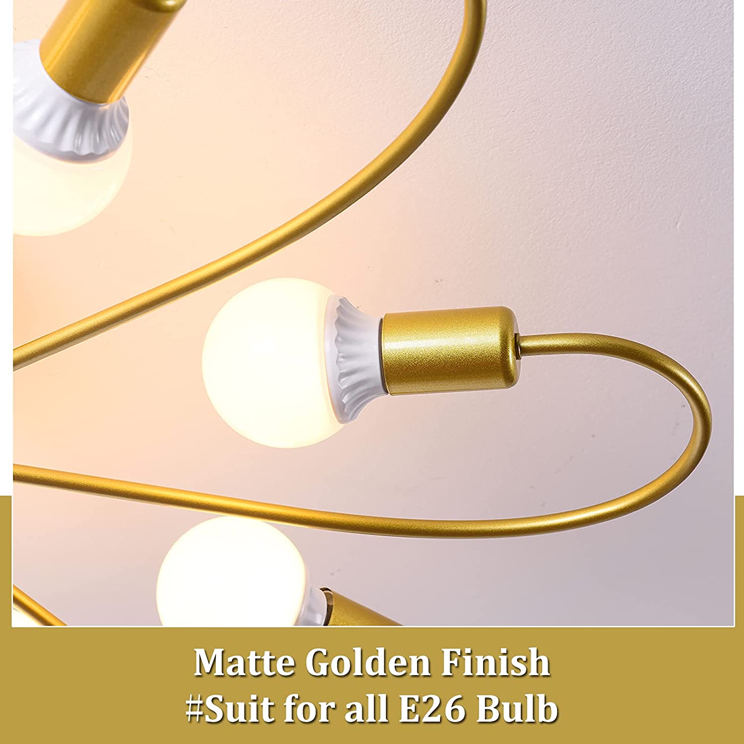 This semi flush mount ceiling light surrounded by 8 matte gold iron rods and bulbs, looks up like a flower blooming on your ceiling. Combine modern and vintage styles. It can match with home decoration various styles. Ideal for living room, dining room, bedroom, kids study room, kitchen island, hallway, office, bar, cafe shop and more. Compatible with LED, CFL, Edison, Halogen or incandescent bulbs 60 watts or less.As long as the bulb fits the E26 lamp holder, it is applicable. Fully dimmable with a compatible dimmer switch and dimmable bulbs to create the perfect atmosphere that makes you comfortable. *- Material: Metal *- Color: Gold *- Finish: Painted *- Voltage Ranting: 110V *- Item Size: 33 * 33 * 4.7 inches *- Bulb Power: Max 60 Watt per bulb *- Bulb Base: 8 * E26 Base Bulb ( Bulbs Are Not Include ) *- Semi-Flush Mount Industrial Ceiling Light Fixture with 8 arms lighting. *- The excellent ceiling light fixture for decorating household and commercial area. *- Fully dimmable when used with dimmable bulbs and compatible dimmer switch. *- Compatible with any E26 base bulbs, such as Edison bulbs, incandescent bulbs, CFLs and LED bulbs. *- If you want to change the bulbs, please switch off and after the bulb is cold.