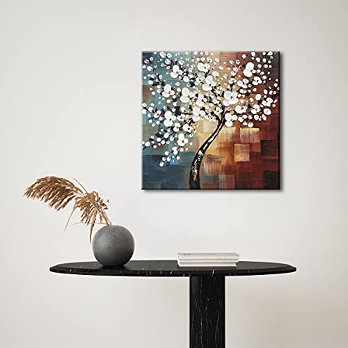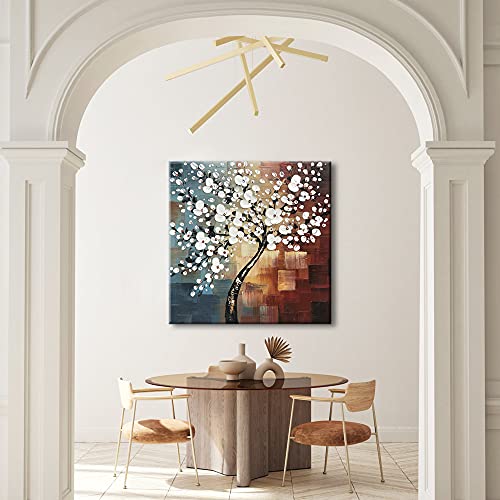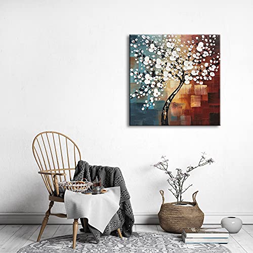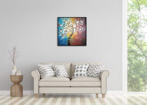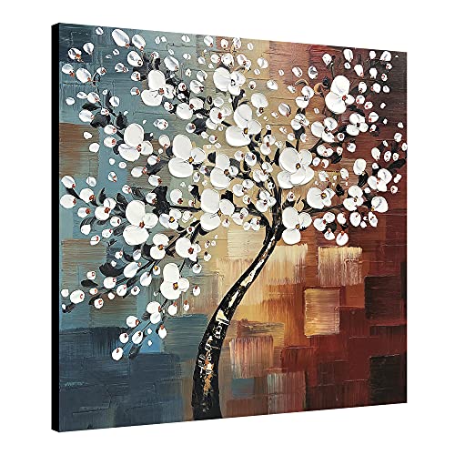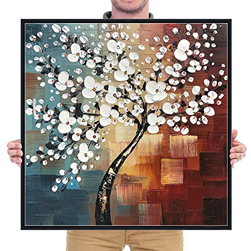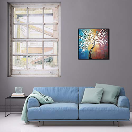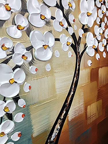 - One piece stretched and framed perfect white flowers canvas oil paintings ready to hang for home decorations wall decor, each panel has a black hook already mounted on the wooden bar for easy hanging out of box.