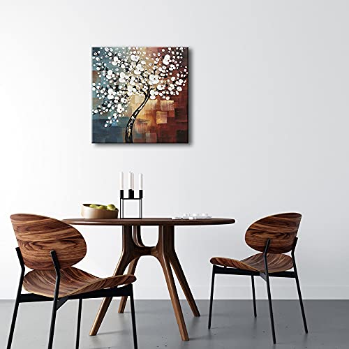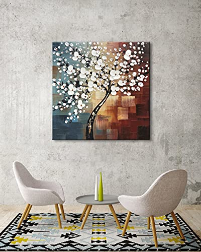 Modern Abstract White Flowers Oil Paintings on Canvas Wall Art 100% Hand Painted