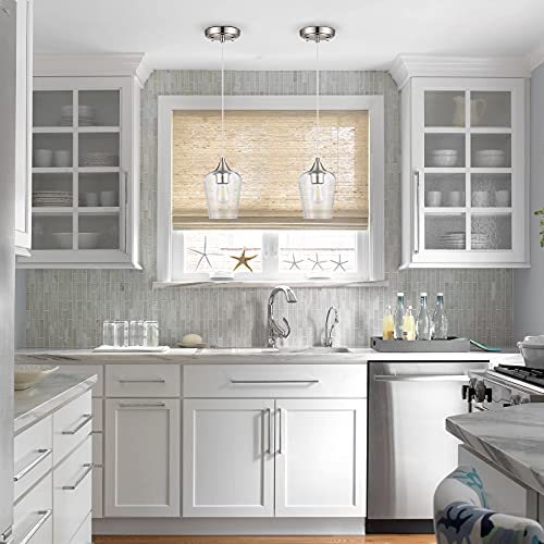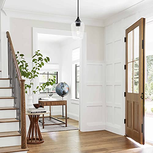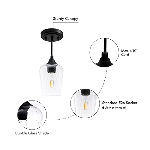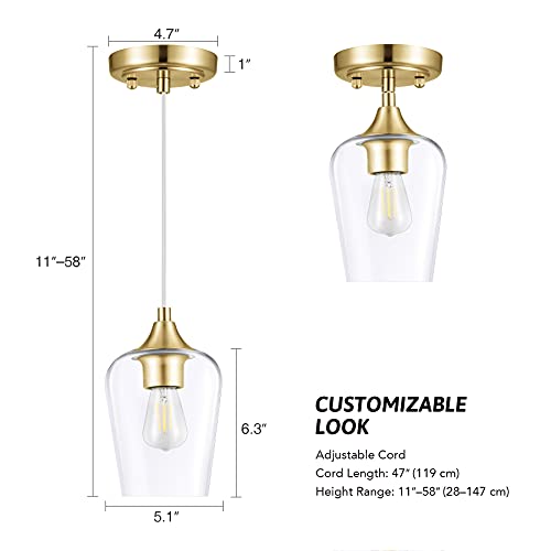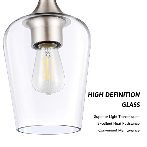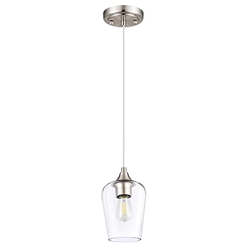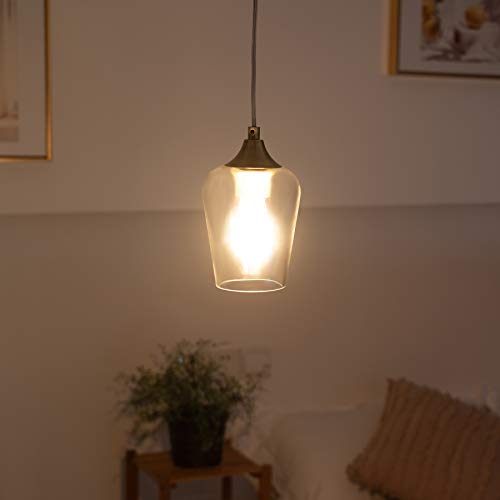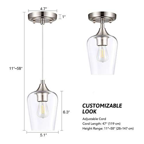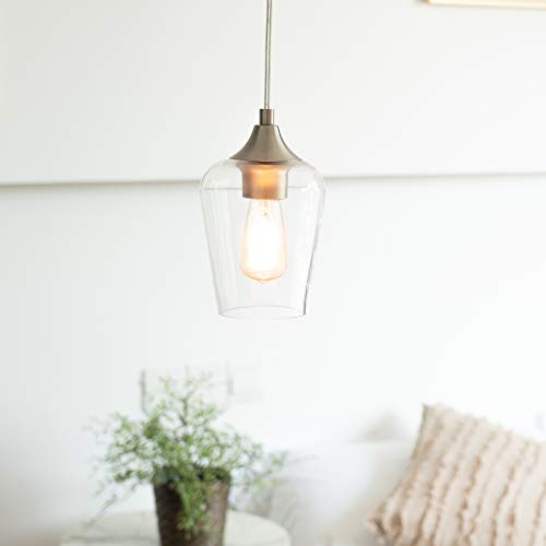 - ELEGANT ACCENT LIGHTING: The simple translucent design will add a warm elegant flare to any living space. The clear glass shade is crafted with soft edges with a sleek bulb socket allowing for maximum light and brightness. This unique light fixture hangs from an adjustable cord spanning from 11 inches to 58 inches allowing for a large range of design possibilities.