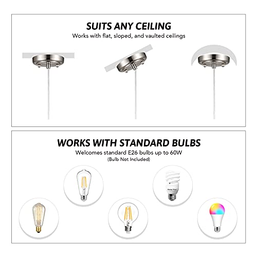 - BULB & DIMMER COMPATIBILITY: Suited for E26 sockets Type A with LED or Incandescent bulb. Can be hard-wired and connected to dimmable light switch if desired. Recommended maximum bulb power is 60W (bulb NOT included).