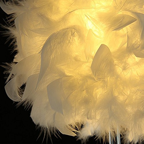- Material:Natural spring lampshade, high quality pure white feathers.Totally hand made feather lamp shape