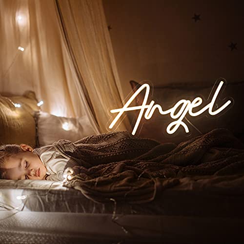 - This neon sign with the word Angel for kids bedroom,church,school,hospital,art wall.Warm white angel neon sign LED is perfect gift for wedding, birthdays, festivals, anniversaries, Christmas, housewarming, new couples, thanksgiving day, mother's day etc.