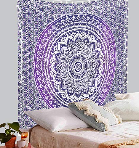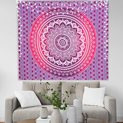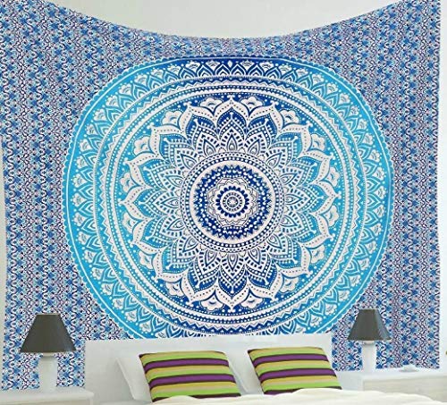 - 【MADE IN INDIA】- Ombre tapestry is made of lightweight 100% Cotton Fabric, made & printed in India. Size: 54x60 inches. A wonderful example of Indian craftsmanship. The material is so soft and durable, easy to hang and install.