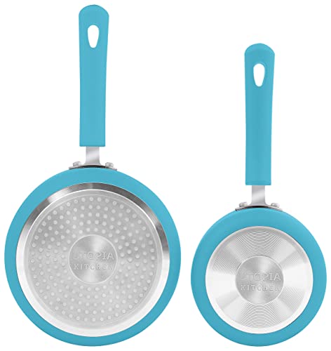 - SET OF 2 – The set comprises of one 1-quart saucepan and one 2-quart saucepan; the pans carry a thickness of 3 mm with a 2-layer non-stick coating inside and a heat-resistant paint on the outside