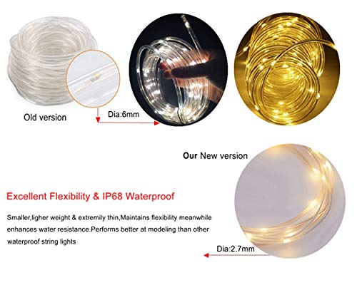 - 【High quality & durable】: The led rope light string is thin and flexible and not easy to broken, the tubes protect the wire perfectly. The Rope Lights string can be easily bent, and shaped around plants, signs, furniture and almost everything.