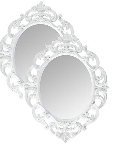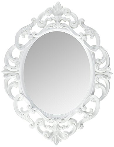 Oval Vintage Wall Mirror, White, 11.5 x 15 Inch