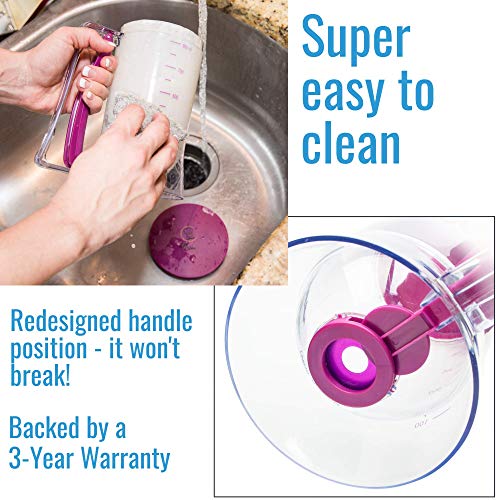 - 🥞 NEW UPDATED DESIGN TO PREVENT BREAKING! Our redesigned pulley handle has been repositioned to ensure quality and durability. In short, IT WON'T BREAK! So squeeze away pancake after pancake. Not to mention our fail-safe valve doesn't leak leaving your hands and kitchen clean and making it safe to use by your little kids. Best of all, it’s ¾ inch wide, allowing for chunky muffin mix to slide through easy breezy.