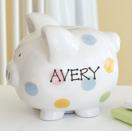 Personalized Ceramic Polka Dot Piggy Bank, Christmas Birthday Gift For Baby Kids, Girls, Boys, Nursery Decor, Custom Name, Large Size