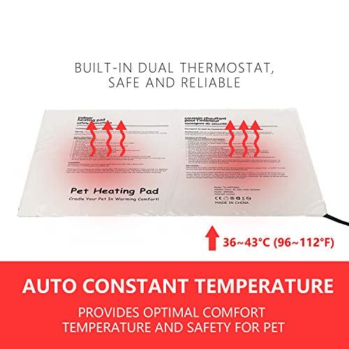 - 🐩Heating Pad for Dogs and Cats: 2 Thermostats inside of pad temperature, Generates 96.8-109.4℉ comforting heat.This heating mat size:17.7×15.7in. it suitable for cats and small dogs