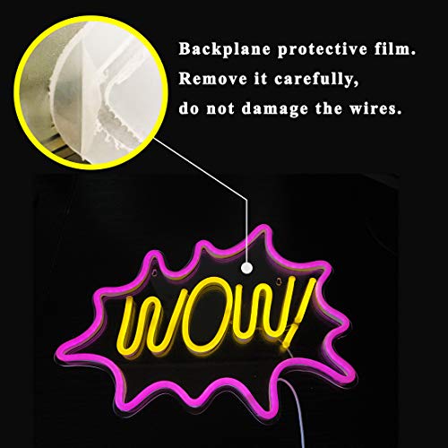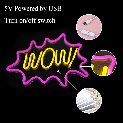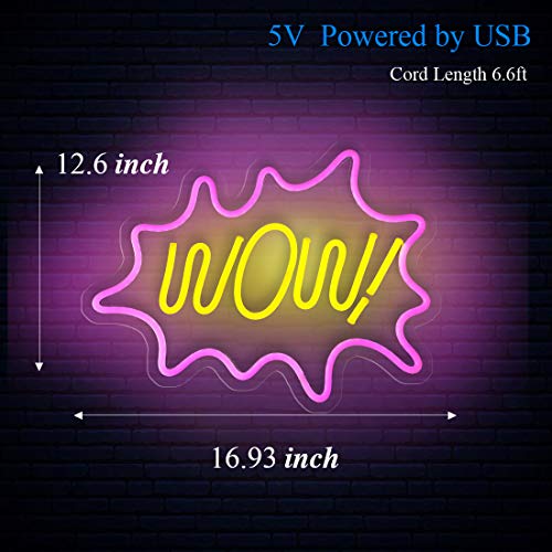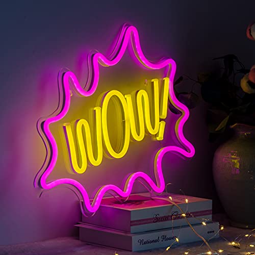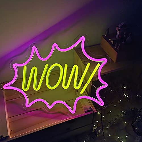 Pink Wow LED Neon Light Sign, 17”x13” Wall Art Neon Wall Sign