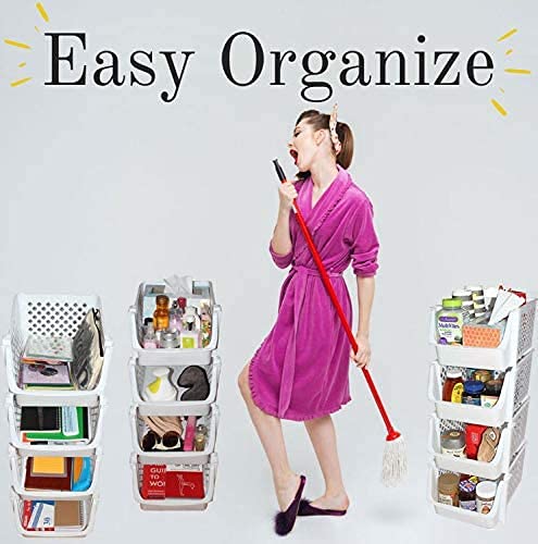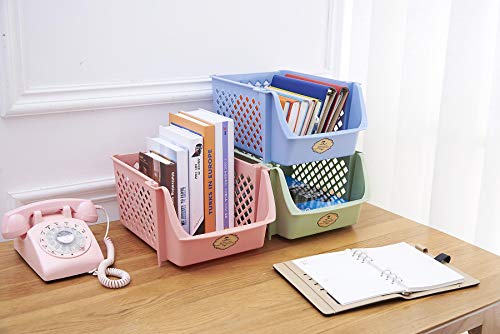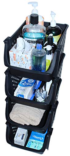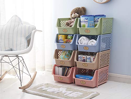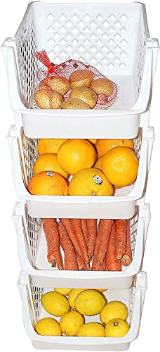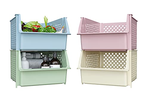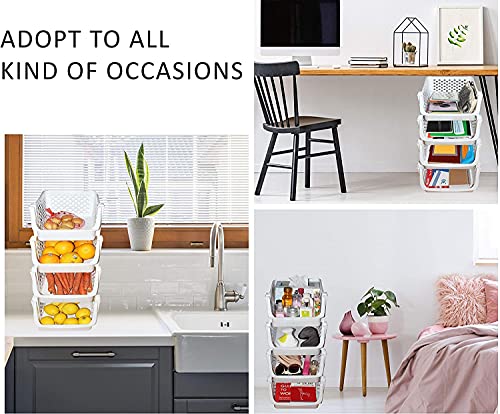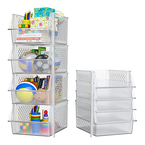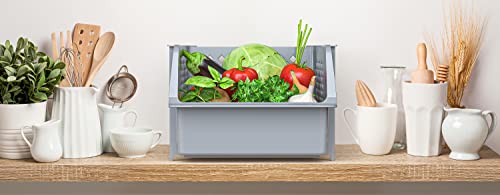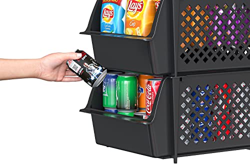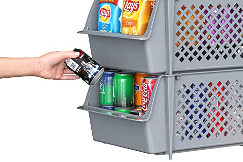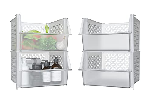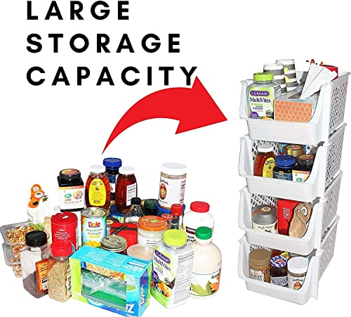 - KEEPS ESSENTIALS ORGANIZED AND VISIBLE - Stackable bins hold foods, toys, utensils, and toiletries without bending off. Set of 4, Each bin size: 14” x 11” x 7”.