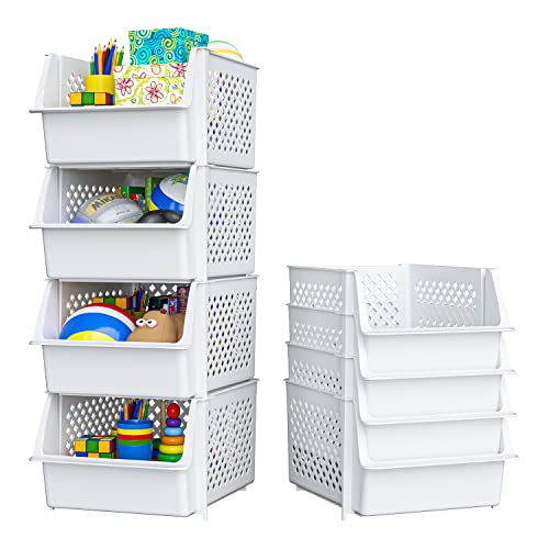 Plastic Stackable Storage Bins for Pantry - 4-Pack