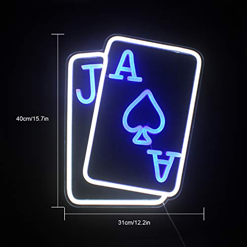 - Bigger size -- Playing cards shaped neon light 15.7"x 12.2",larger than comparable neon signs, led playing cards signs have a pre-drilled holes for easy hanging,(give two hooks),usb cable 78", so neon sign position is flexible.