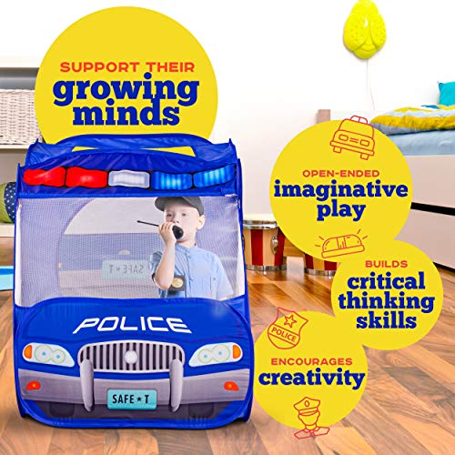 - PERFECT GIFT FOR KIDS - Kids love this police action-drama, so our police car pop up play tent and police officer costume becomes an exciting and interesting gift that stands out from the rest during birthdays, holidays, and other special occasions. In a way, you also help them get away from screens.