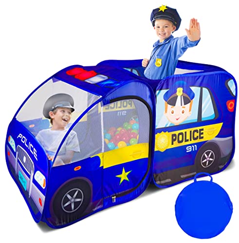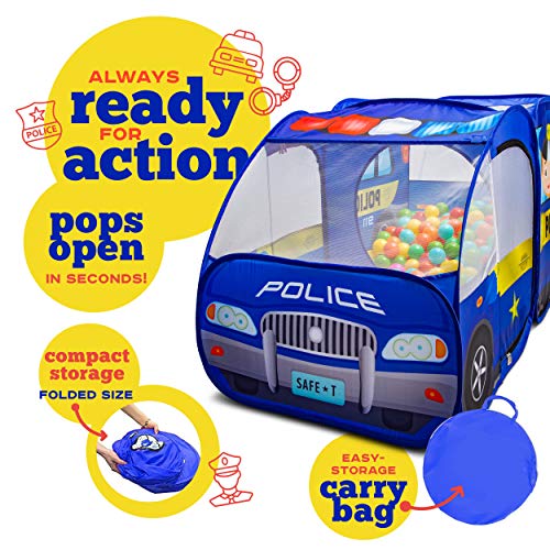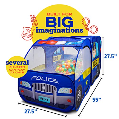 - SUPER VALUE KIDS POLICE CAR TENT AND KIDS BALL PIT - where several kids can get together and pretend play imaginative scenarios in the kids play tent being good guys and bad guys. The chase action sequence and emergency vehicle toy keeps everyone entertained for hours.
