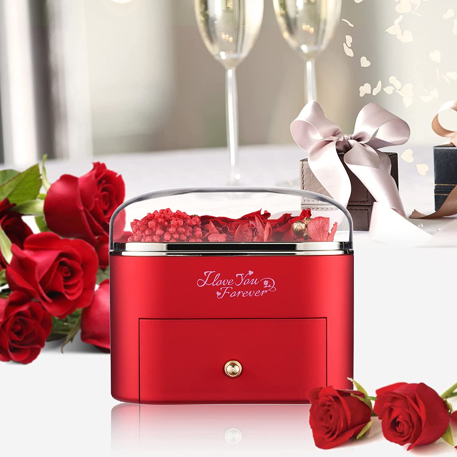 Preserved Red Rose with Red Necklace for Women, Valentines Day Gifts for Her