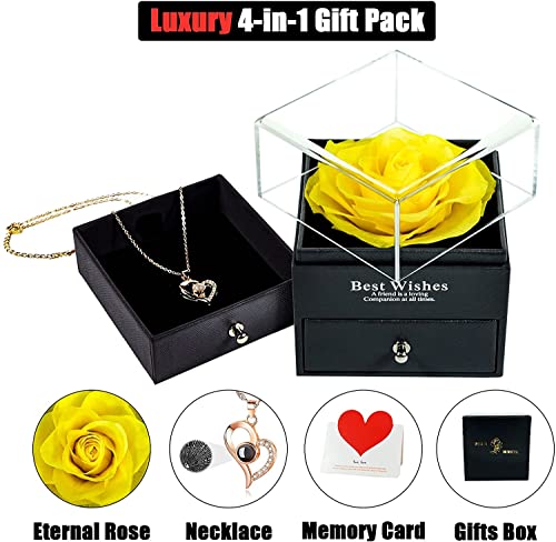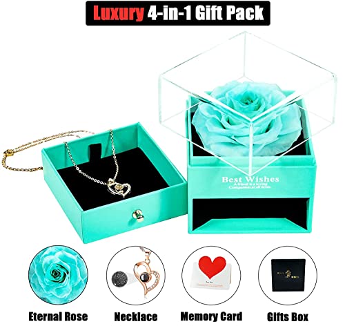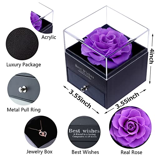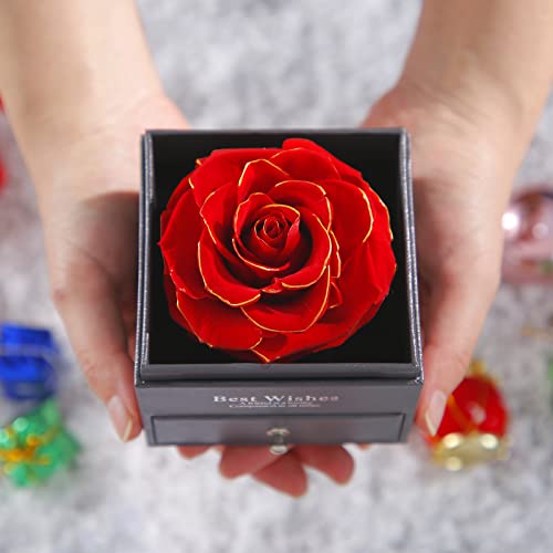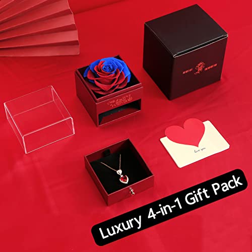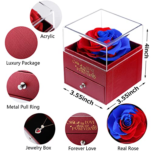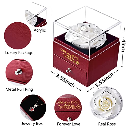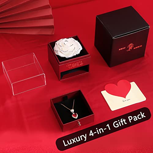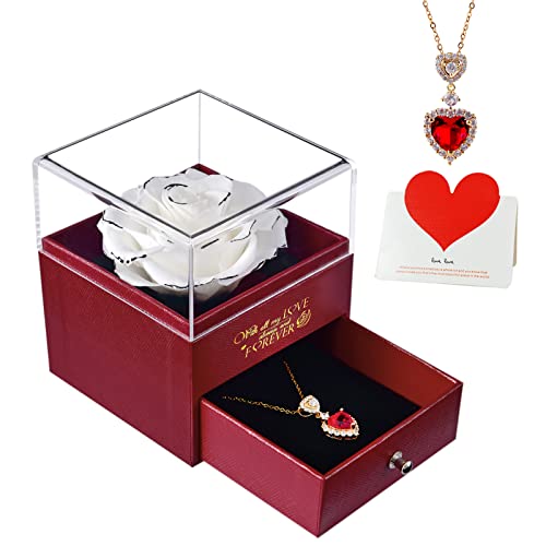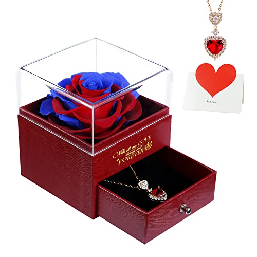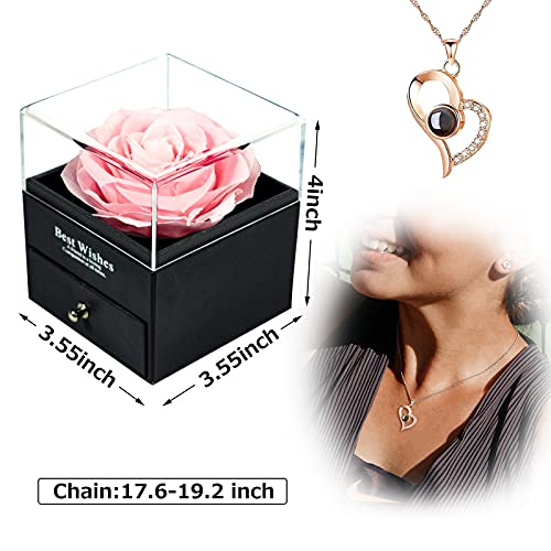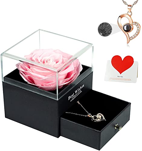 - 【Real Rose with Jewelry Box】The preserved rose is a symbol of eternal love. Nature fresh Rose with I Love You ruby necklace and a love note specially designed for women. The jewel case can also be used to store other small pieces of jewelry or rings.