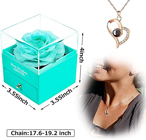 Preserved Rose w/ I Love You Necklace on Mothers Day/Valentines/Birthday