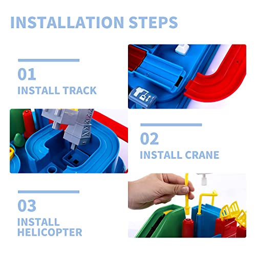 - CHILD-FRIENDLY MATERIALS - This track table vehicle set is made of high-quality and non-toxic ABS materials, has passed physical and mechanical tests, meets toy standards, does not harm children's health. Round edge and smooth surface design let you no longer worry about children will get hurt.