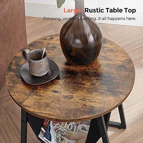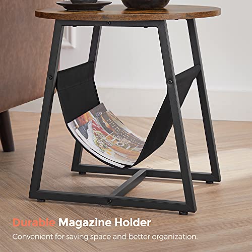 - For People Who Opt for Handy Storage: In addition to a large round top with a diameter of 19.7″, this round end table offers a fabric magazine holder for storing newspapers, magazines, novels, or remote controls while leaving them accessible