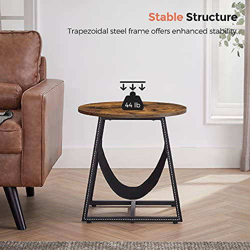Round End Table w/ Pocket, Side Table, Industrial Style, Rustic Brown & Black