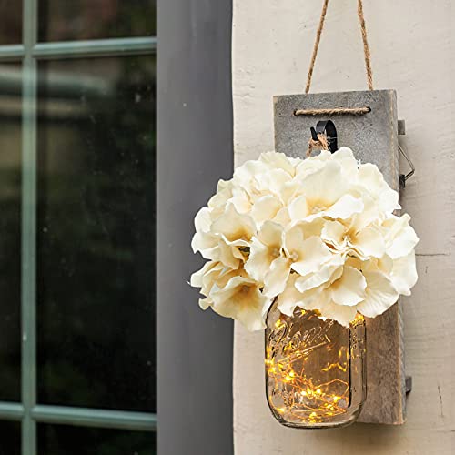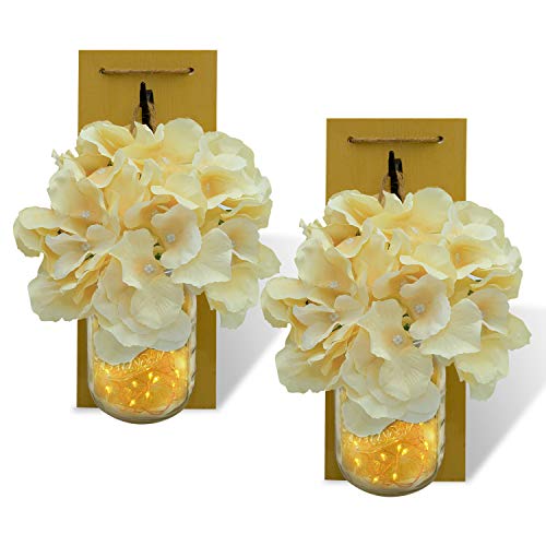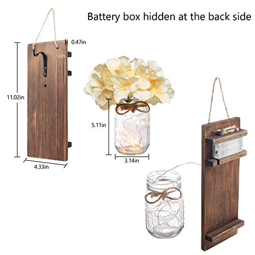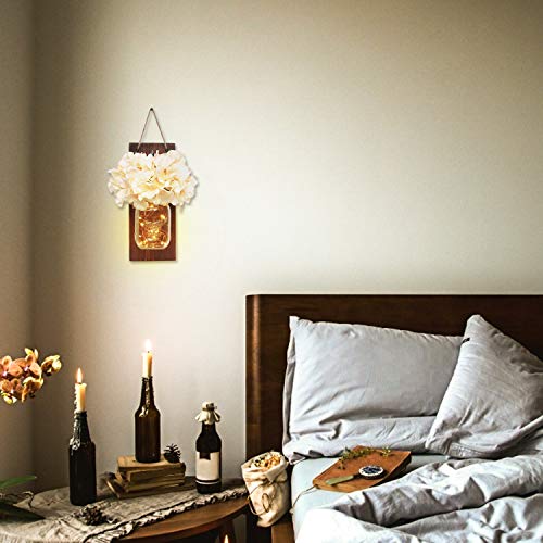- ✅ PERFICT GIFT IDEA FOR FAMILY & FRIENDS - The Farmhouse Sconce could be a super great gift idea and it includes: 2 mason jars, 2 rustic wood holder, 2 strips of LED lights (batteries not included) and 2 silk hydrangea flowers. Perfect gift for your friends, lovers, family and anyone you want to give.